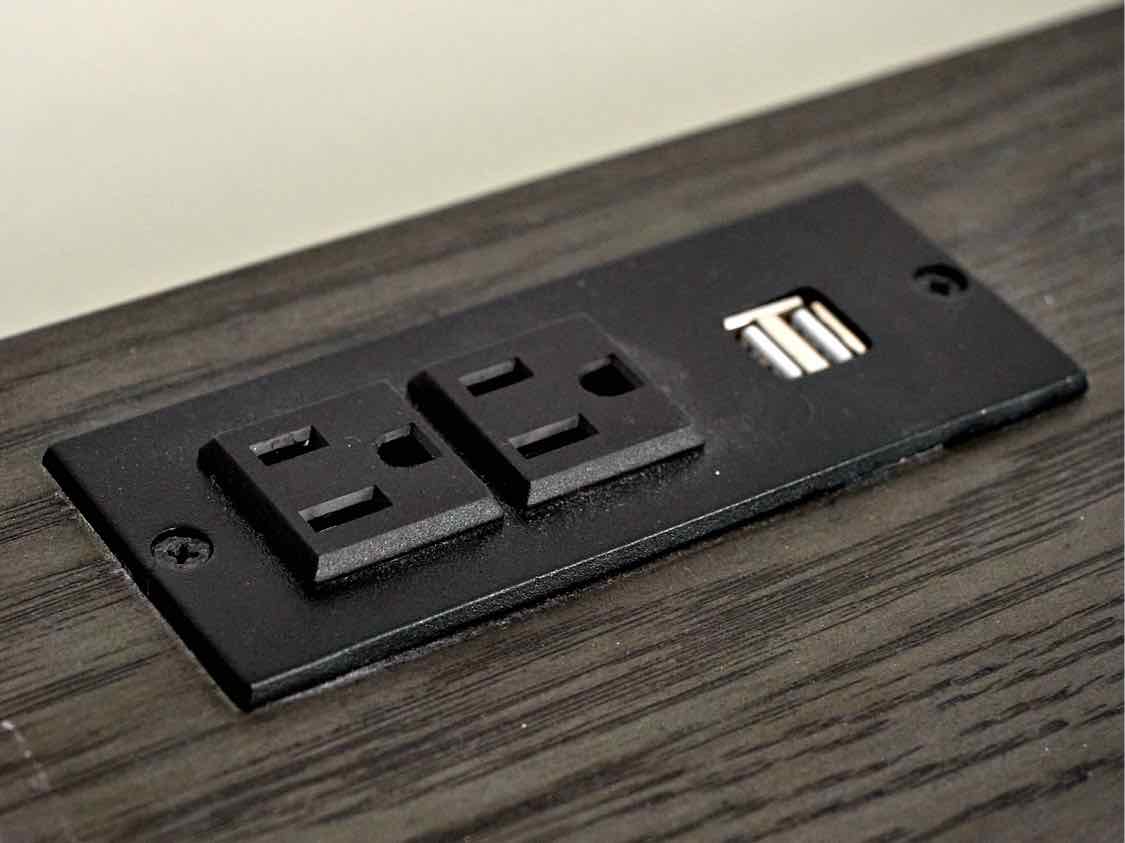 Allison Park L Shaped Desk w/ Charcoal Top & White Base. Power Strip w/ 1 File Drawer, 2 Keyboard Drawers & Shelving.