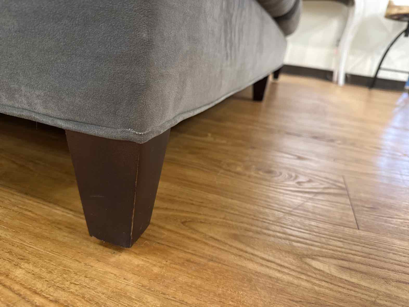 'Whitley' charcoal gray 2-seat sofa with English roll arm and espresso foot
