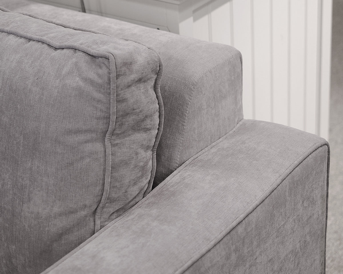 Velvet Modular Sectional With Track Arms and Loose Back Pillows and Cushions.