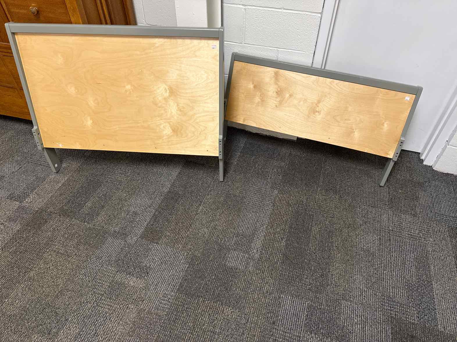 'Sparrow' birch twin bed in light gray with wooden legs (hb, fb, rails, slats)