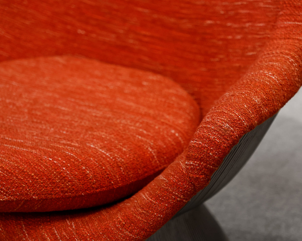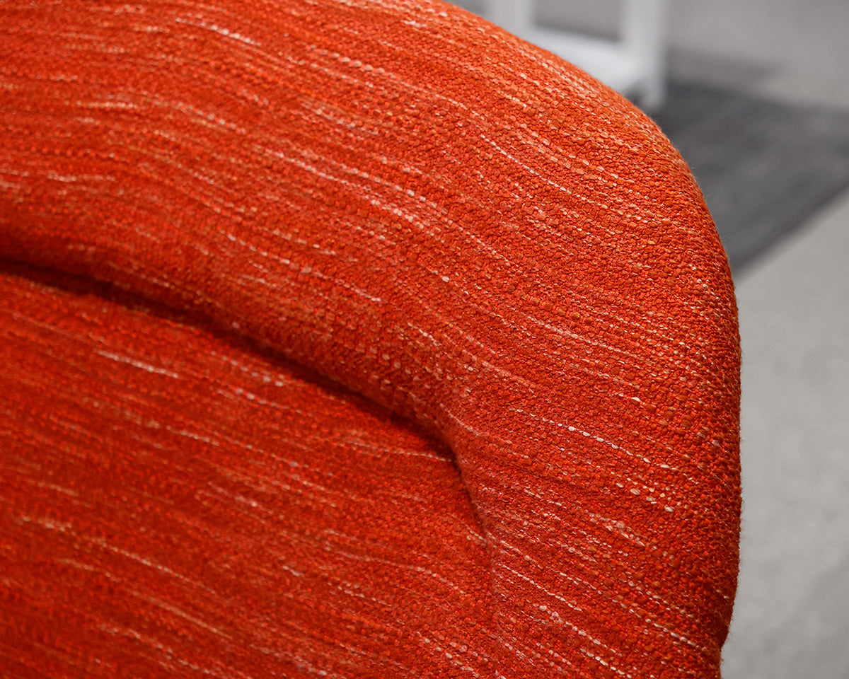 Original Restored Vintage 'Planter Easy Chair' Upholstered in Orange Tweedy Fabric With Polished Nickel Frame. Matching Ottoman 24" dia x 14"h.