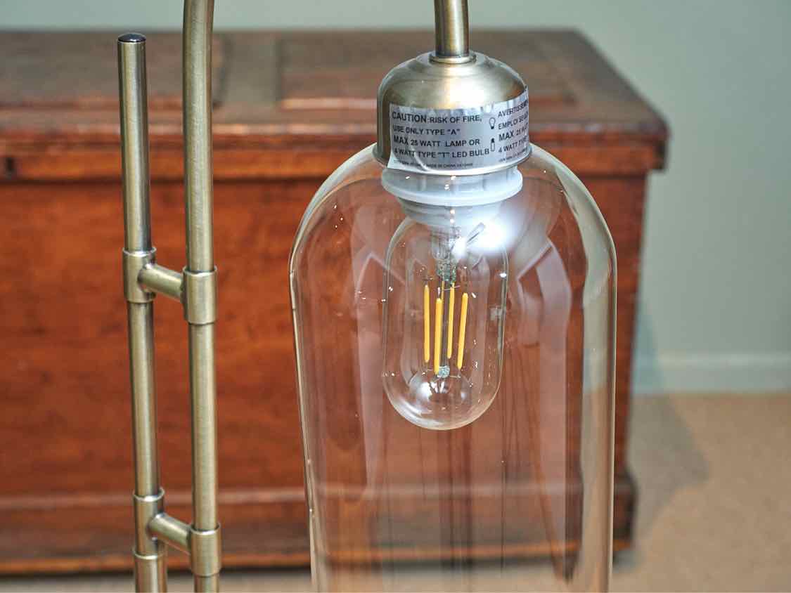 Oro Gold Curved Lantern On White Marbled Base Table Lamp With Linen Shade