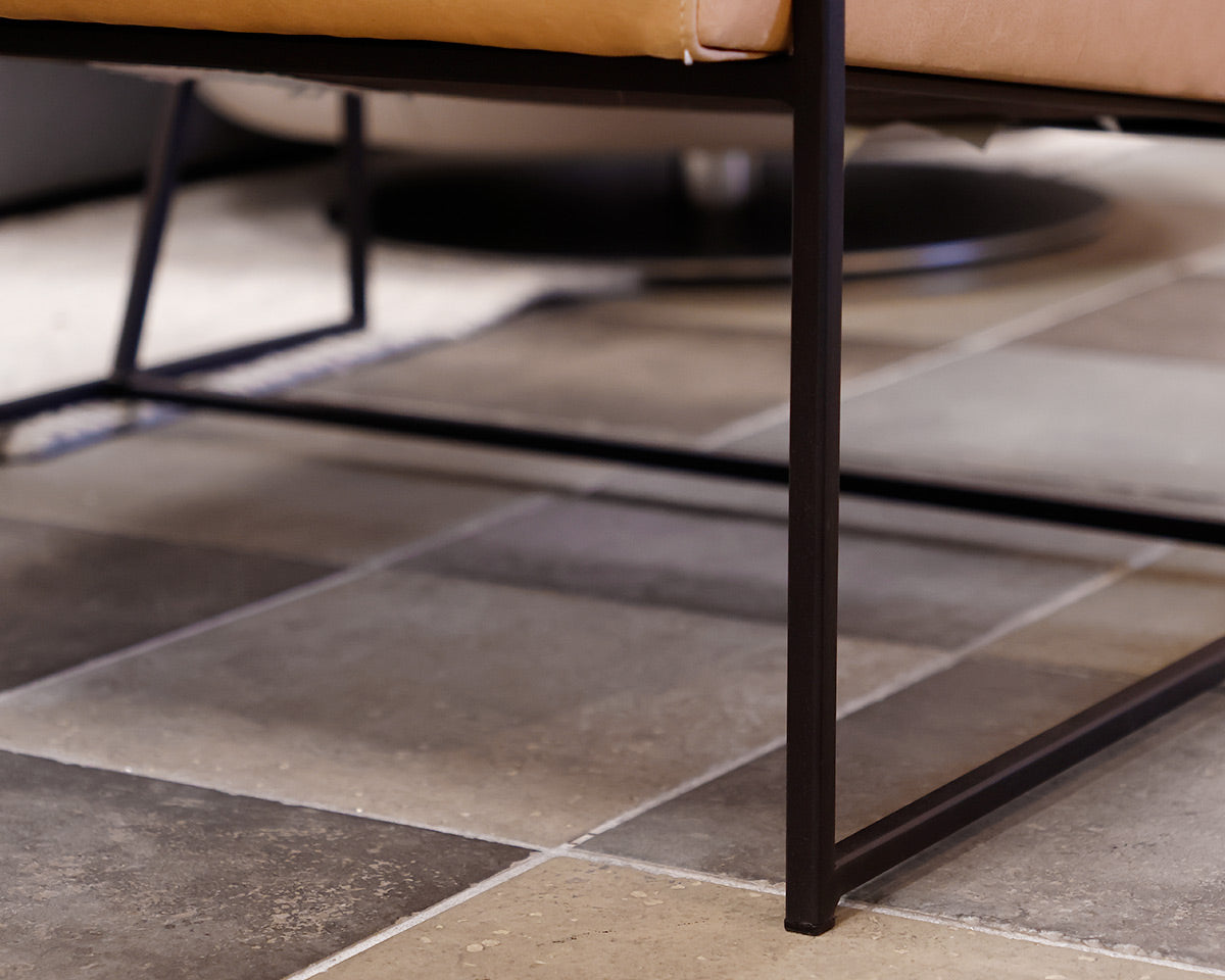Pair of Leather MCM Chairs. Camel Color With Black Metal Frame.