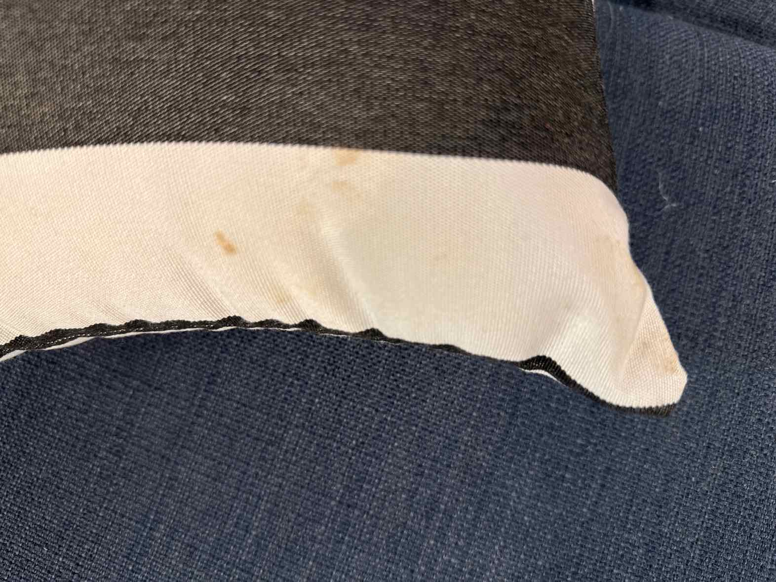 Pair of striped lumbar pillows in soft black and off-white, Sunbrella fabric