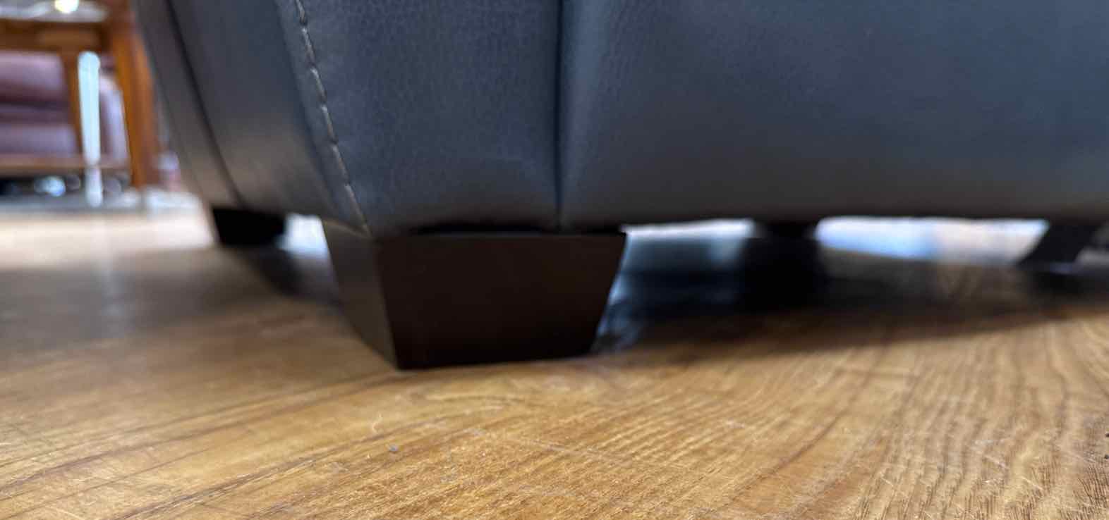 'Payton' tightback leather armchair with single needle top stitching in a cool gray blue w/ matching ottoman