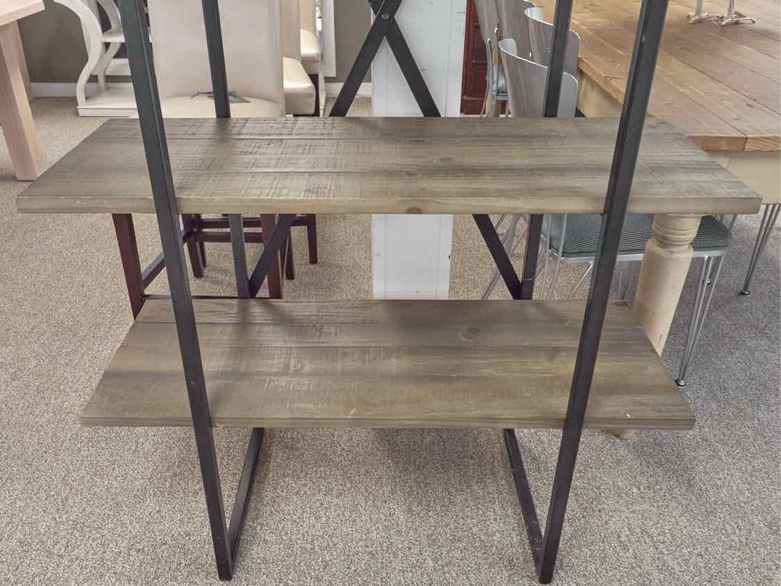 Black Metal Frame Etagere with 4 Driftwood Grey Wood Shelves