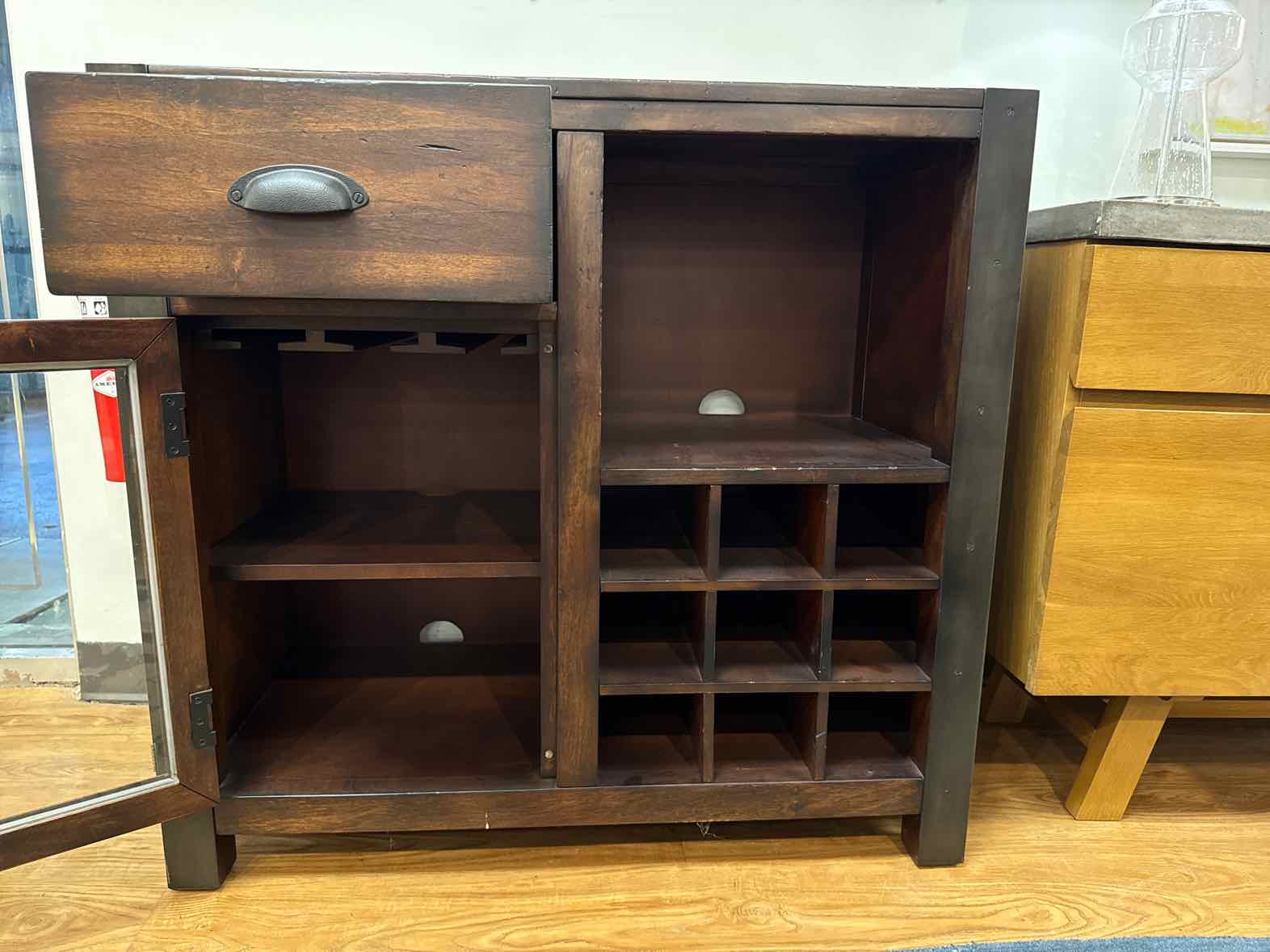 'Cambridge' wine bar cabinet with 1 drawer, cubby, bottle storage and a cabinet with interior shelf