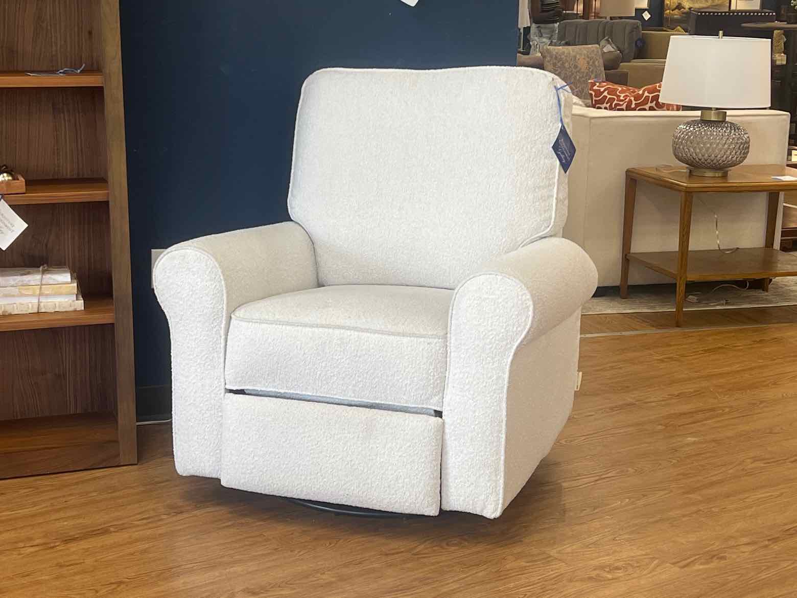 Boucle 240 degree swivel glider with round arm in oatmeal