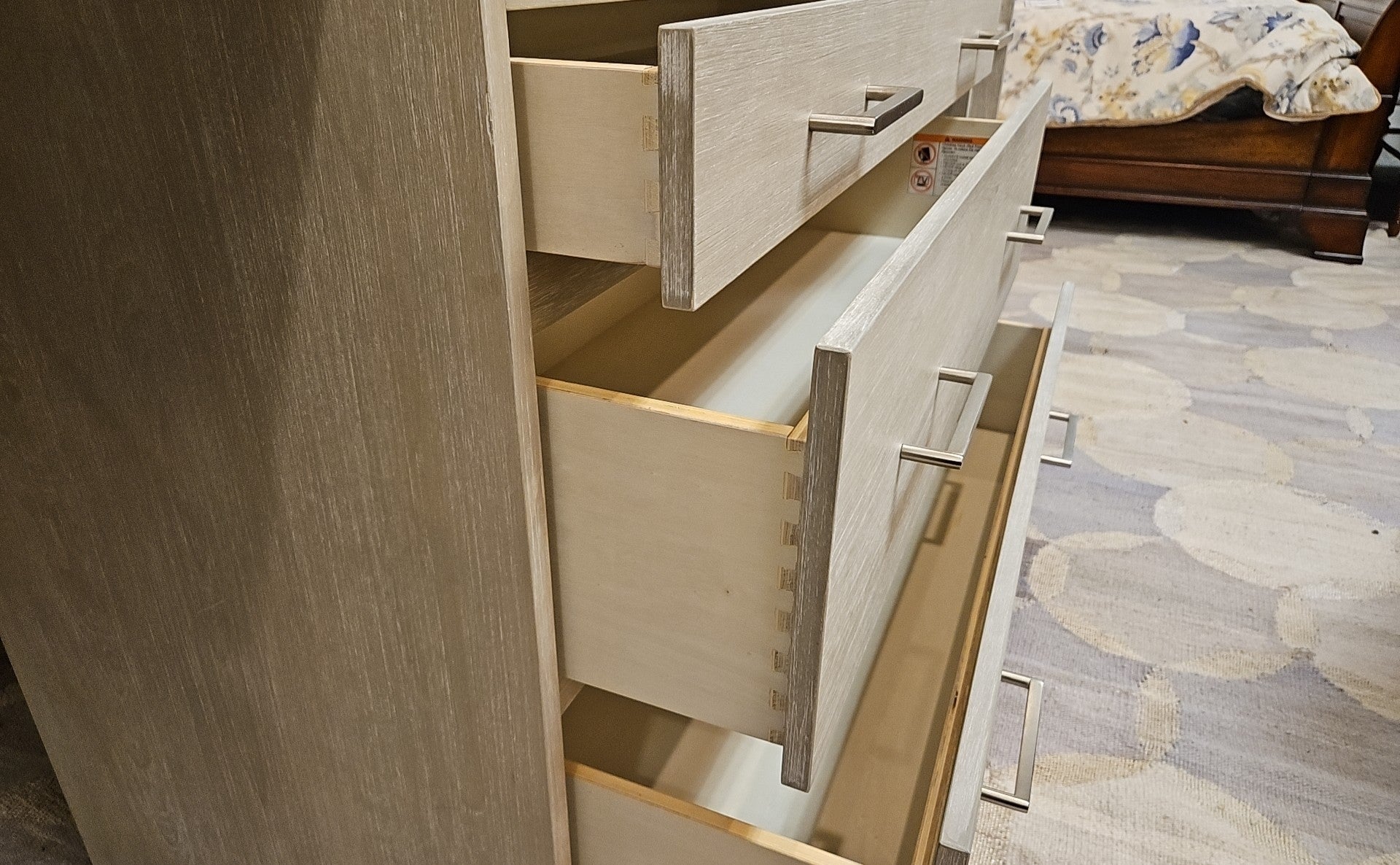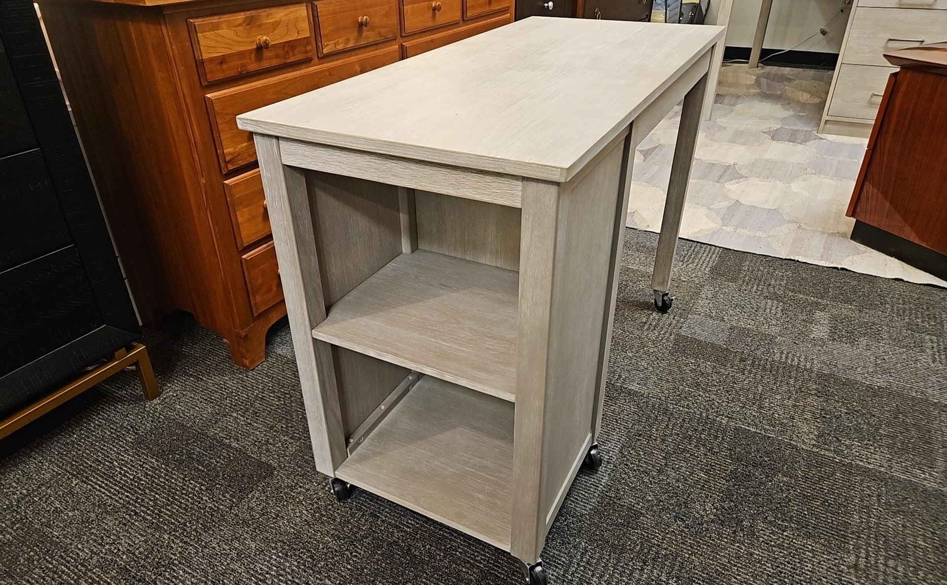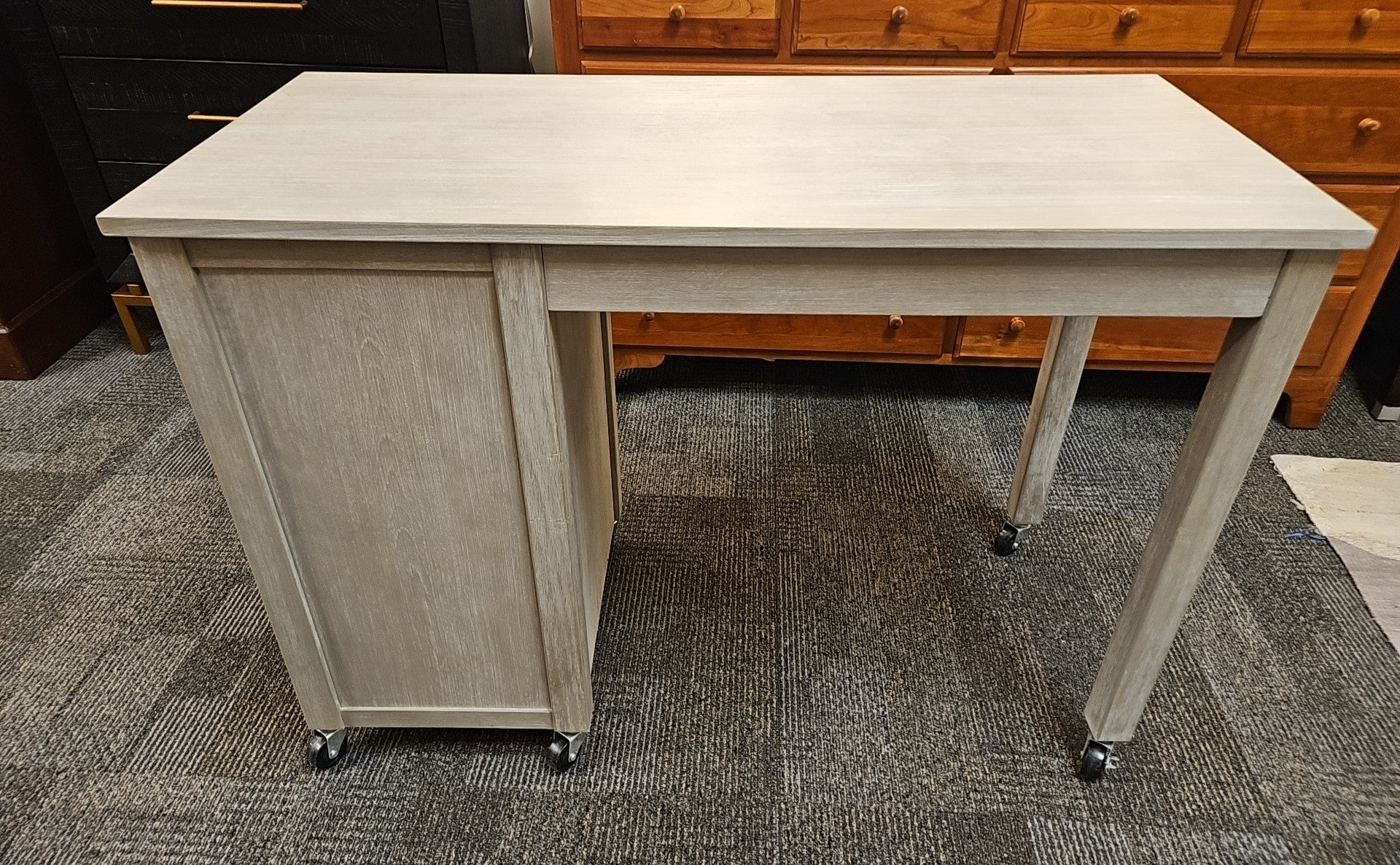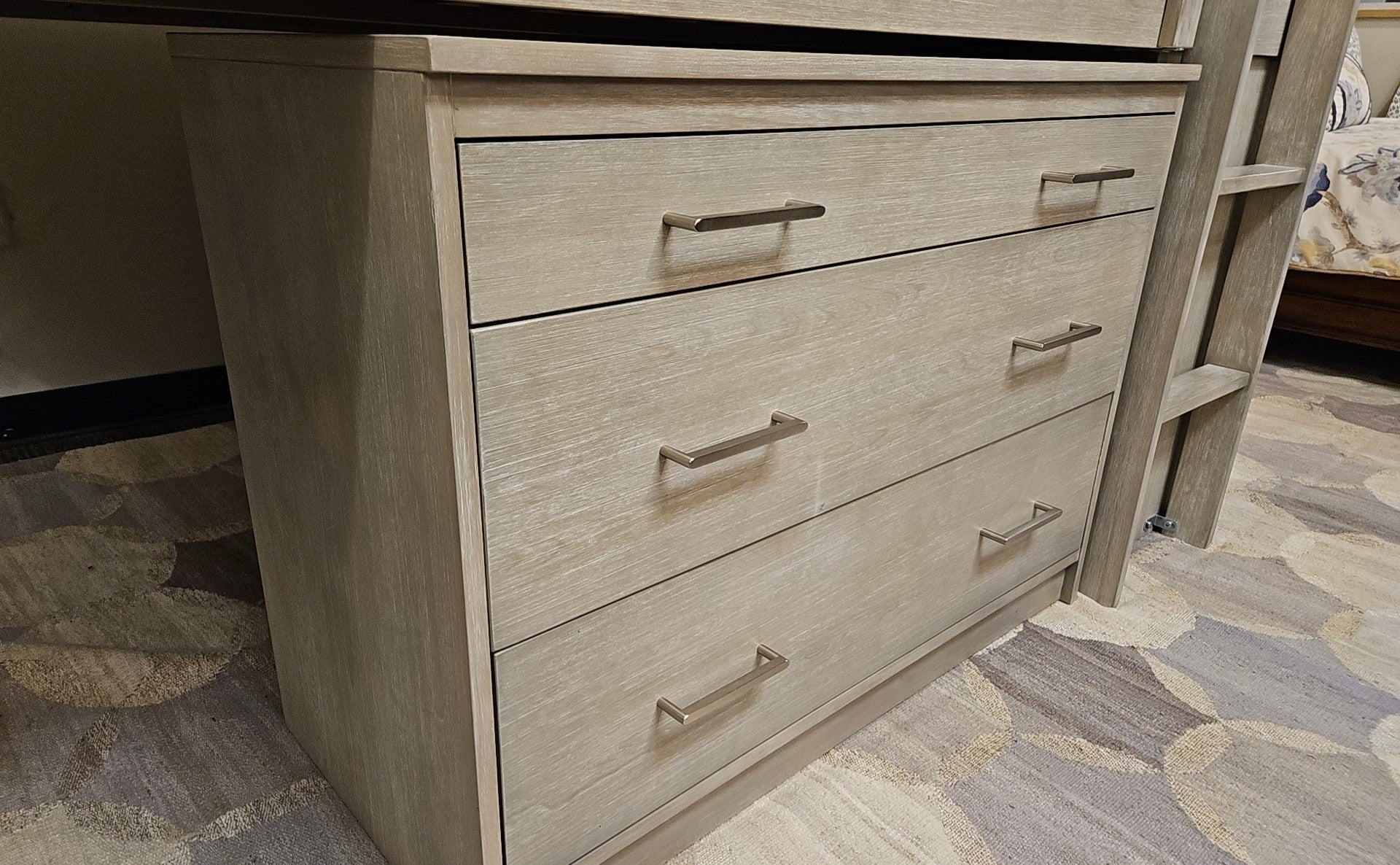 Low loft full bed with pull out desk (42"w x 19"d x 30"h) and 3-drawer chest, in color brushed fog