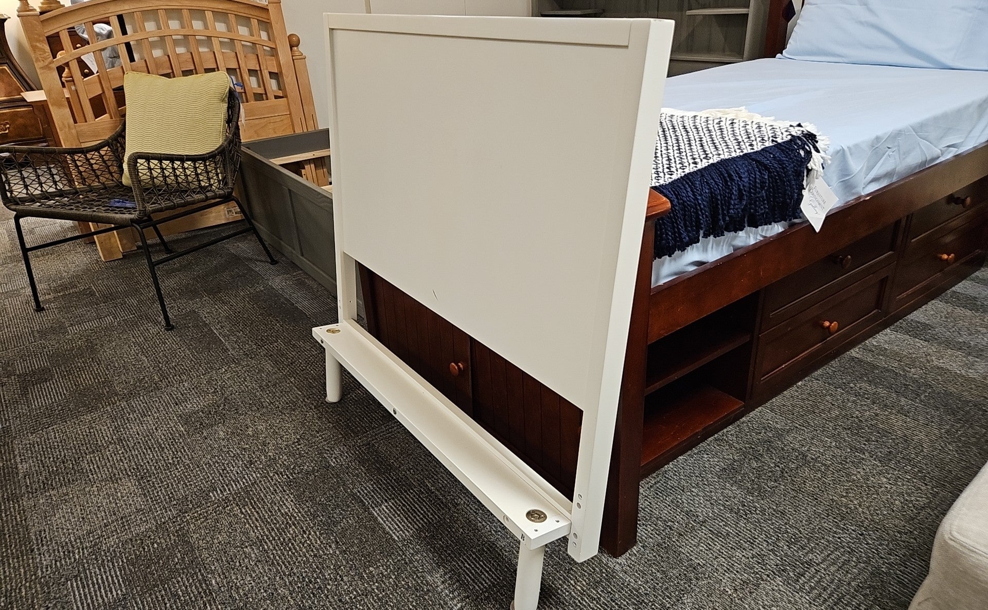 White twin bed with tapered feet (headboard, footboard, sides, slats)