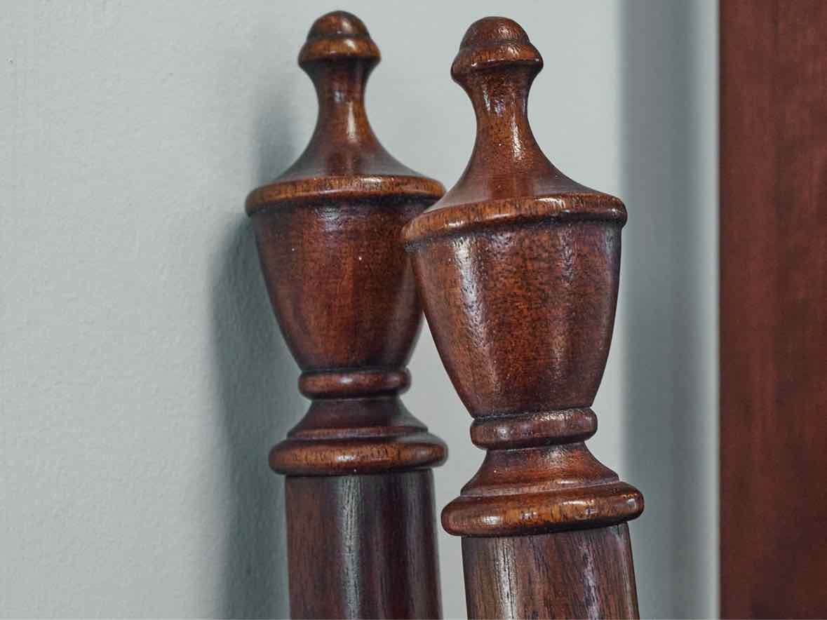 Queen Cherry High Poster Bed with Earn Finial Design w/ Rails & Slats