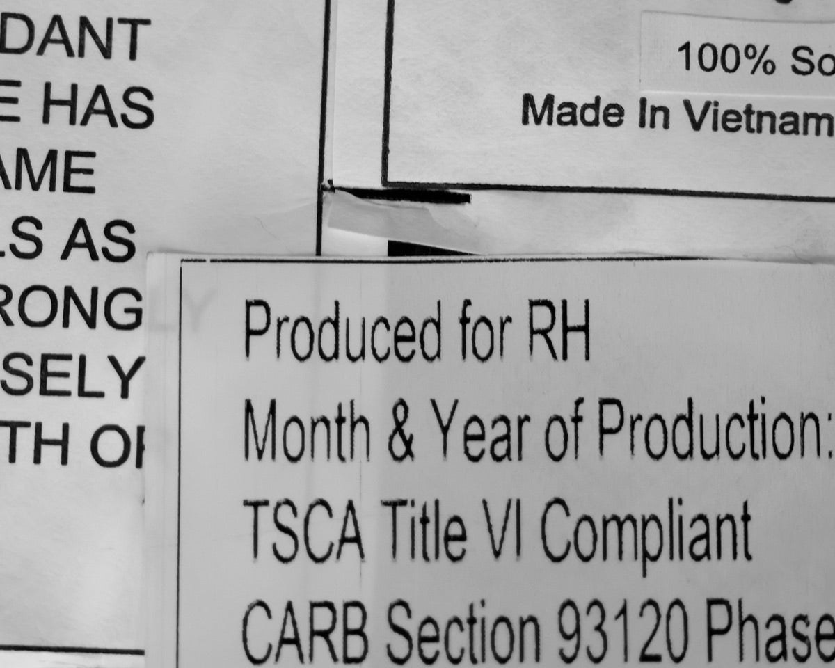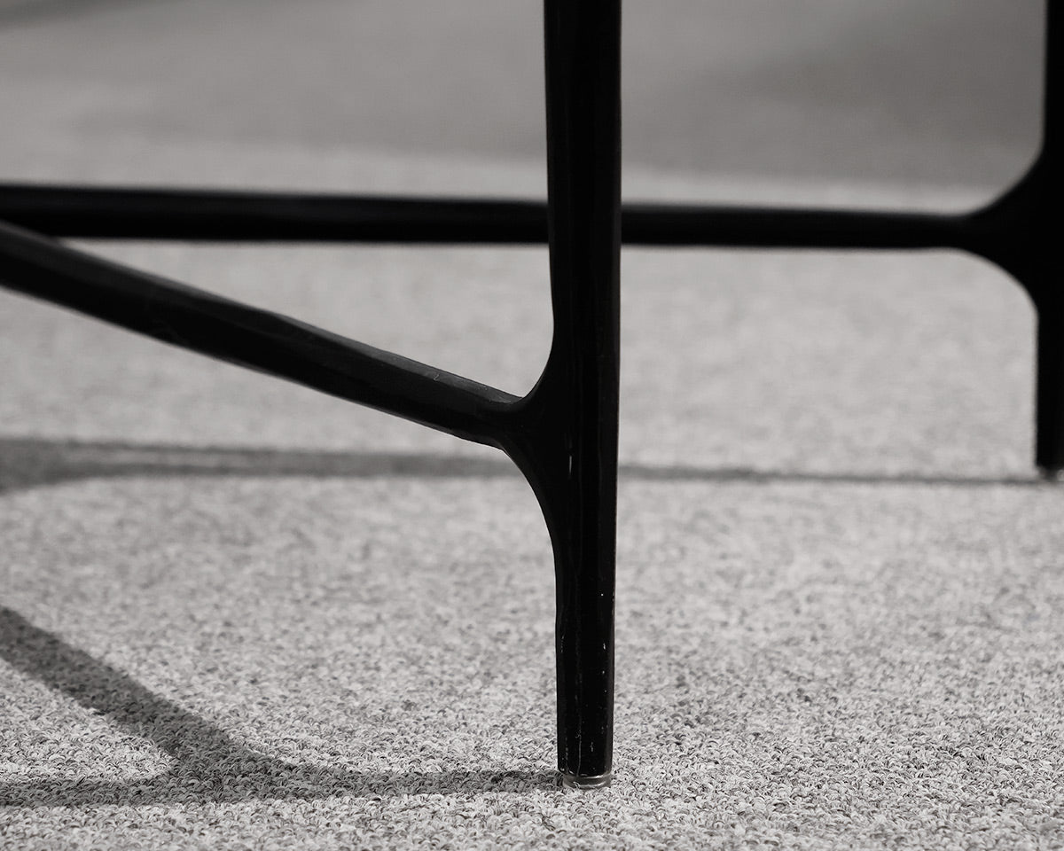 Thaddeus end of bed bench. White preformance linen and hammered metal legs