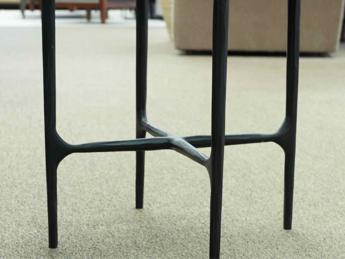 Thaddeus White Marble Round Side table with Black Wrought Iron Base