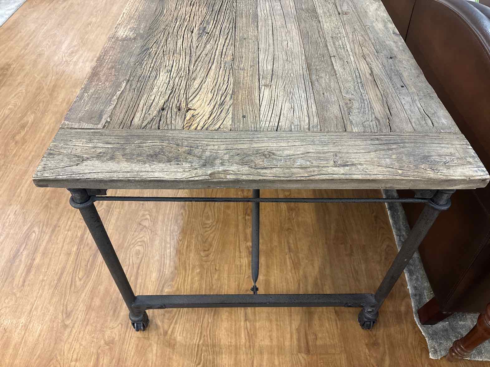 'Flatiron' industrial desk w/ iron base and rustic wooden top