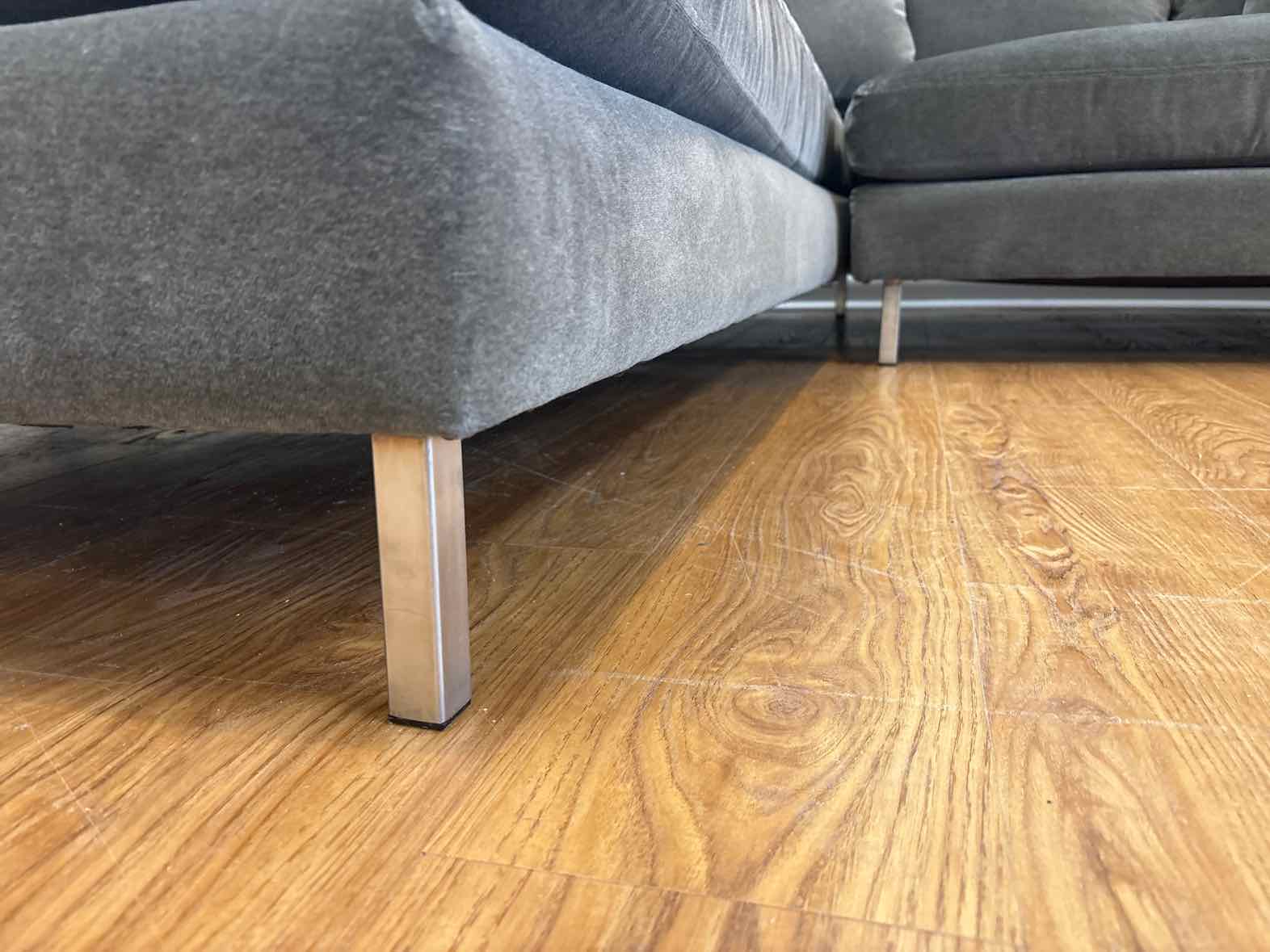 'Metro' 2-piece sectional in grey velvet, left-arm-facing chaise and right angled bumper, foam + down cushions