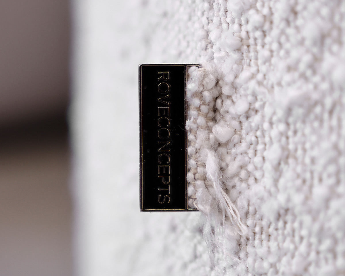 'Reya' Curved Sectional In Pearl Fabric With Brushed Brass Bass.
