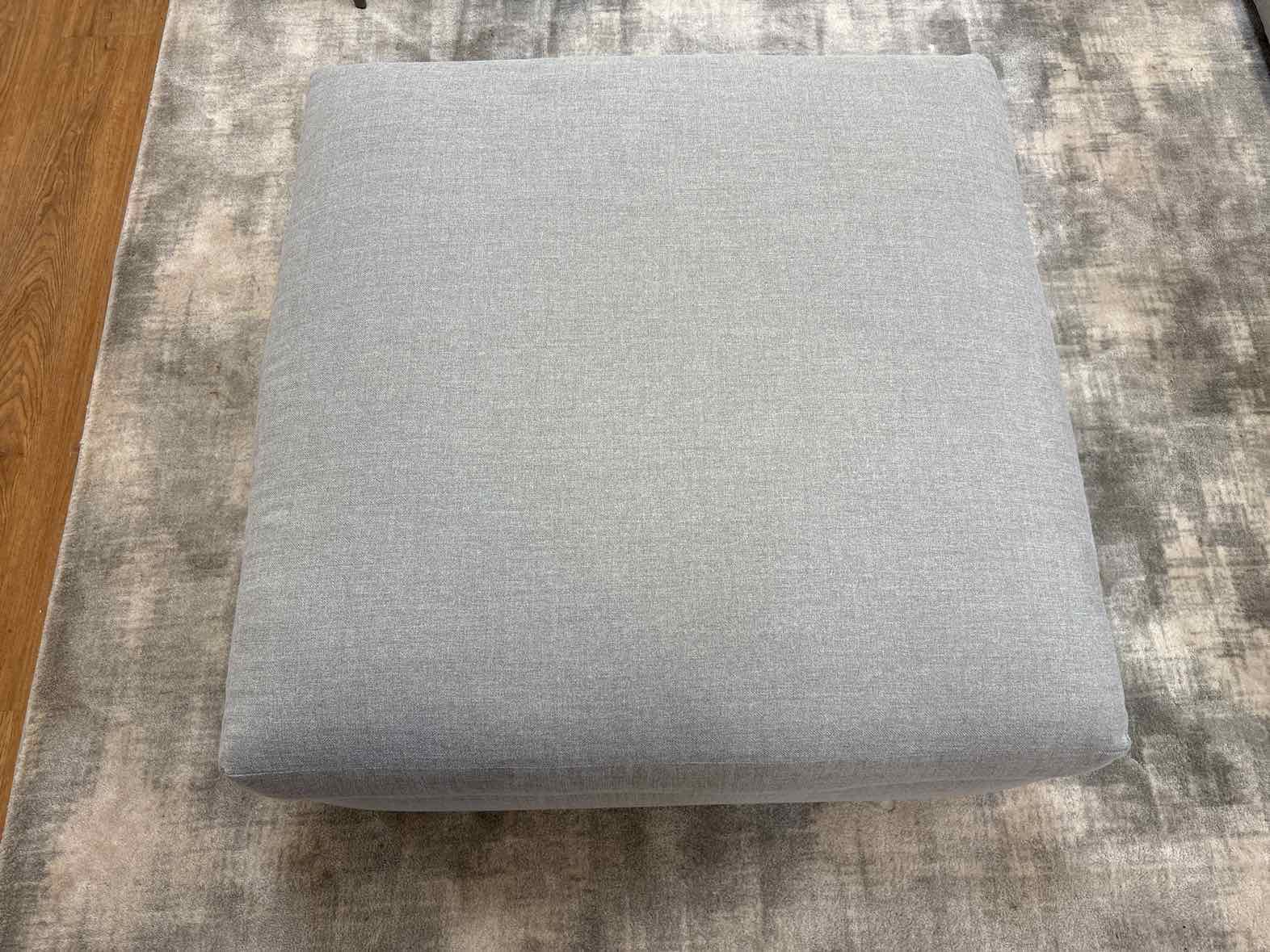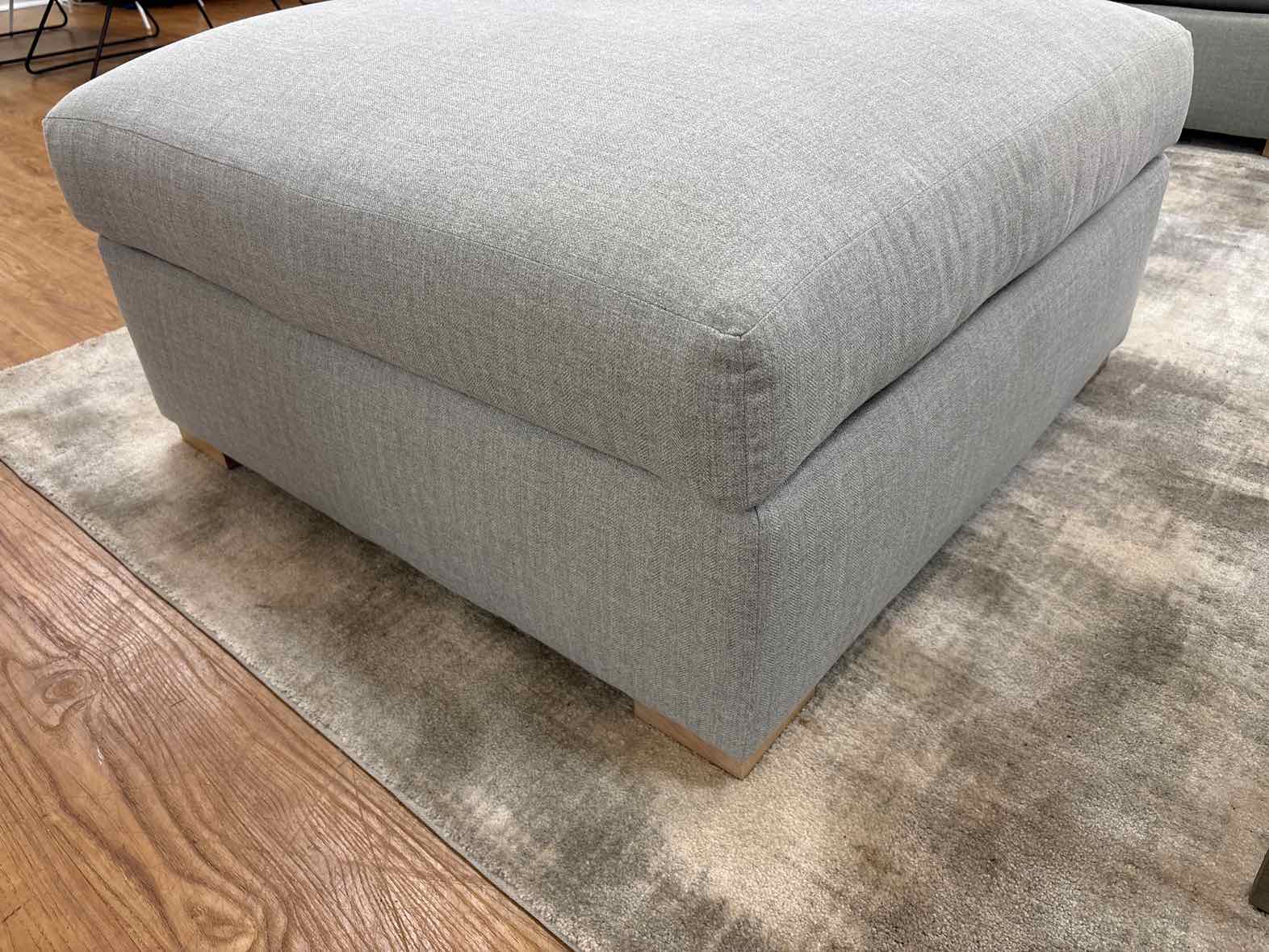 'Asher' 4-piece modular sectional, light grey with track arm and blonde block feet, 2 'Asher' ottomans (36"w x 36"d)
