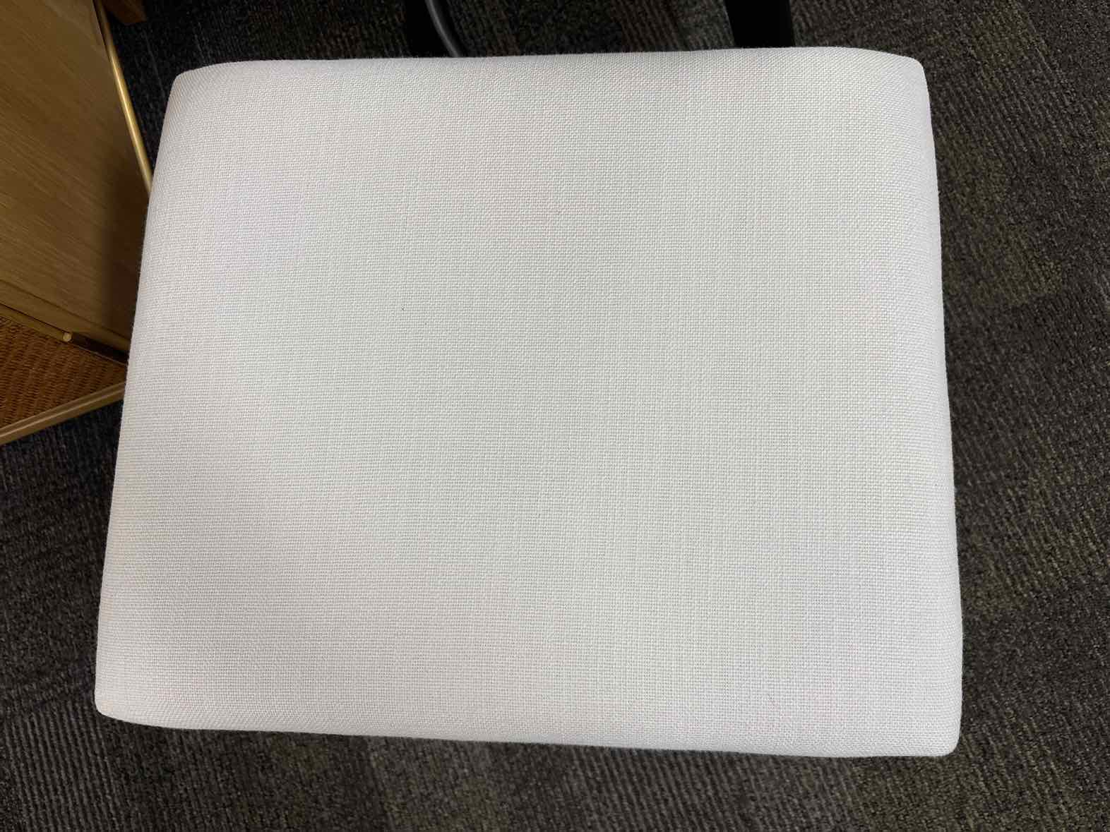 'Balboa' beech wood & woven rattan X-base stool with brass foot caps and white performance cushion