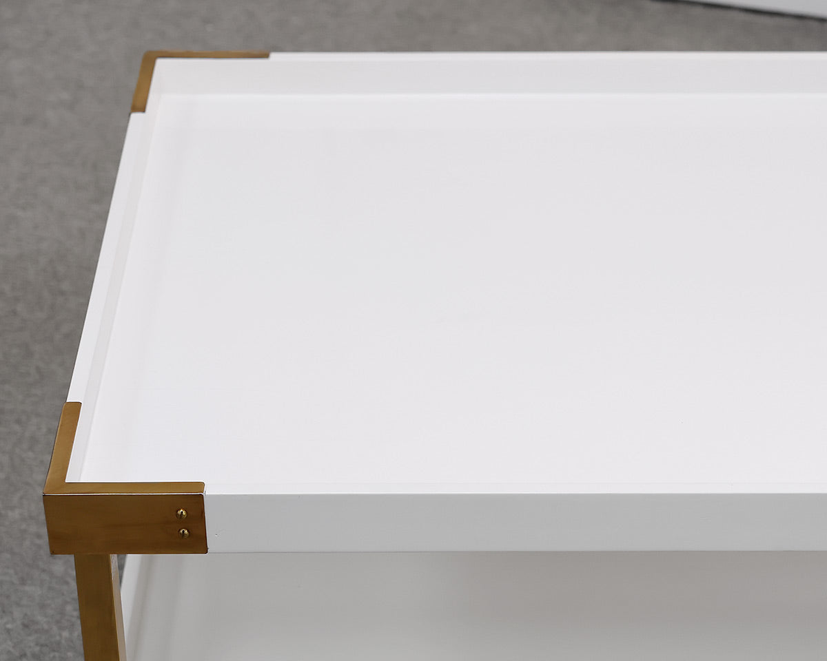Serena & Lily White Lacquer and Brass Cocktail Table