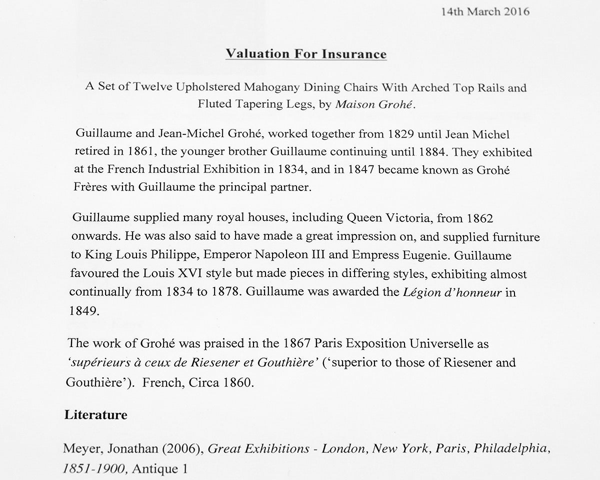 Set of 12 Custom Maison Grohe Upholstered Mahogany Dining Chairs on Casters