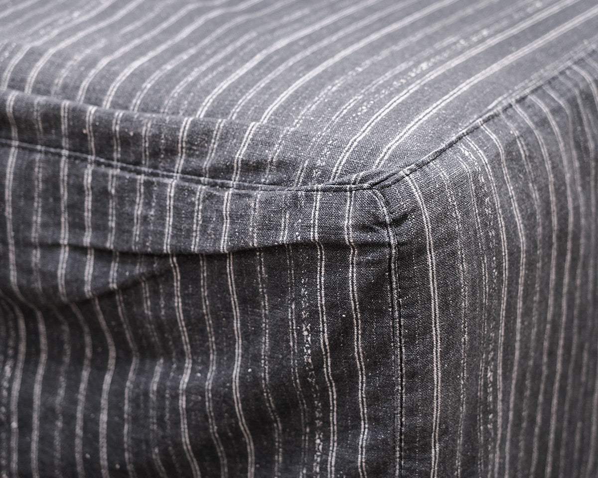 Set of 3 Slip Cover Dining Chairs in a Blue/Gray and White Stripe Fabric.