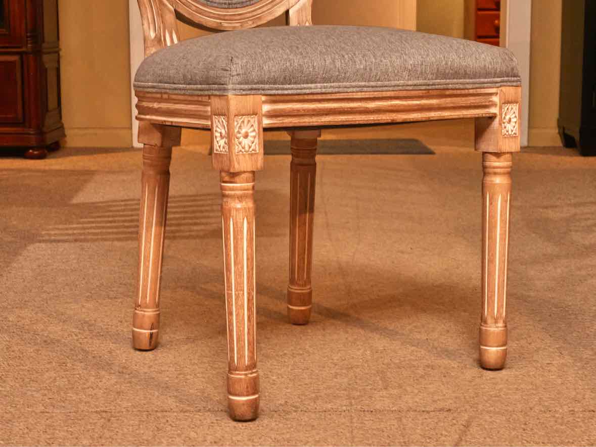 Set Of (6) French Country King Louis XVI Style Grey Upholstered Dining Chairs