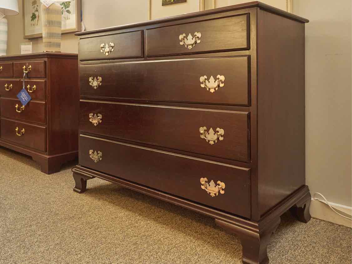 Solid Mahogany Chest W/ 5 Drawers & Brass Hardware
