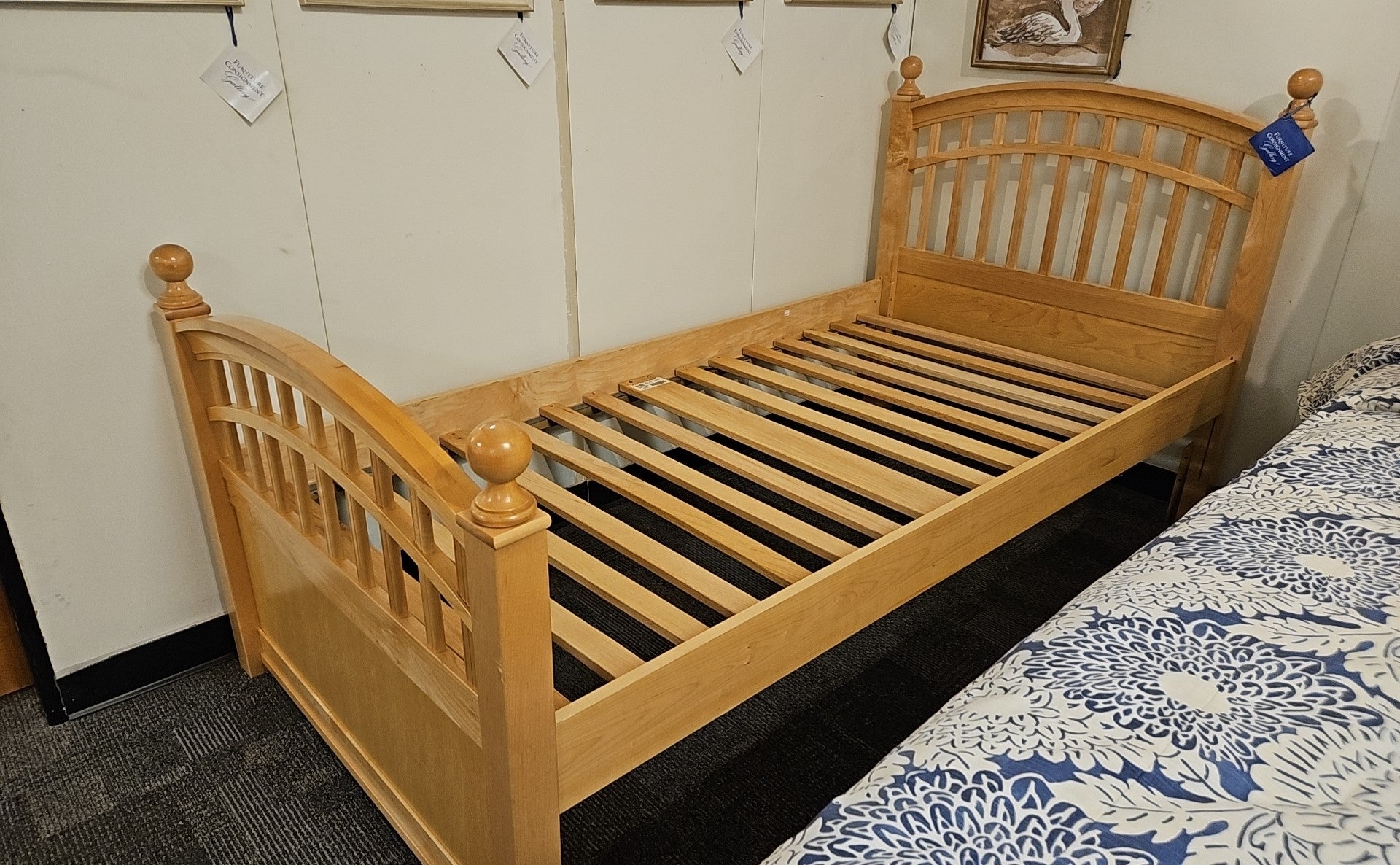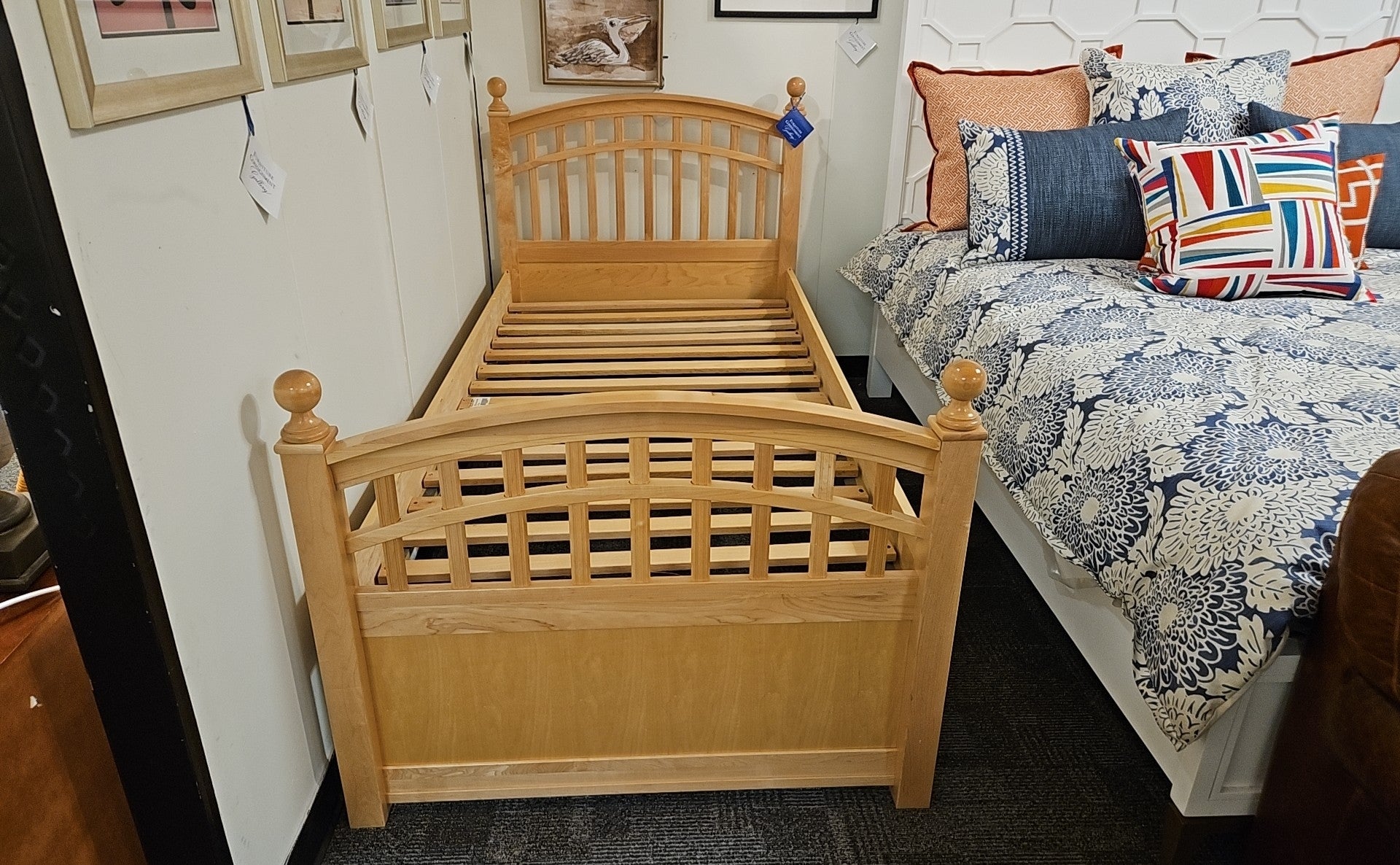 Maple twin cannonball bed with arched headboard & footboard (hb, fb, rails, slats)