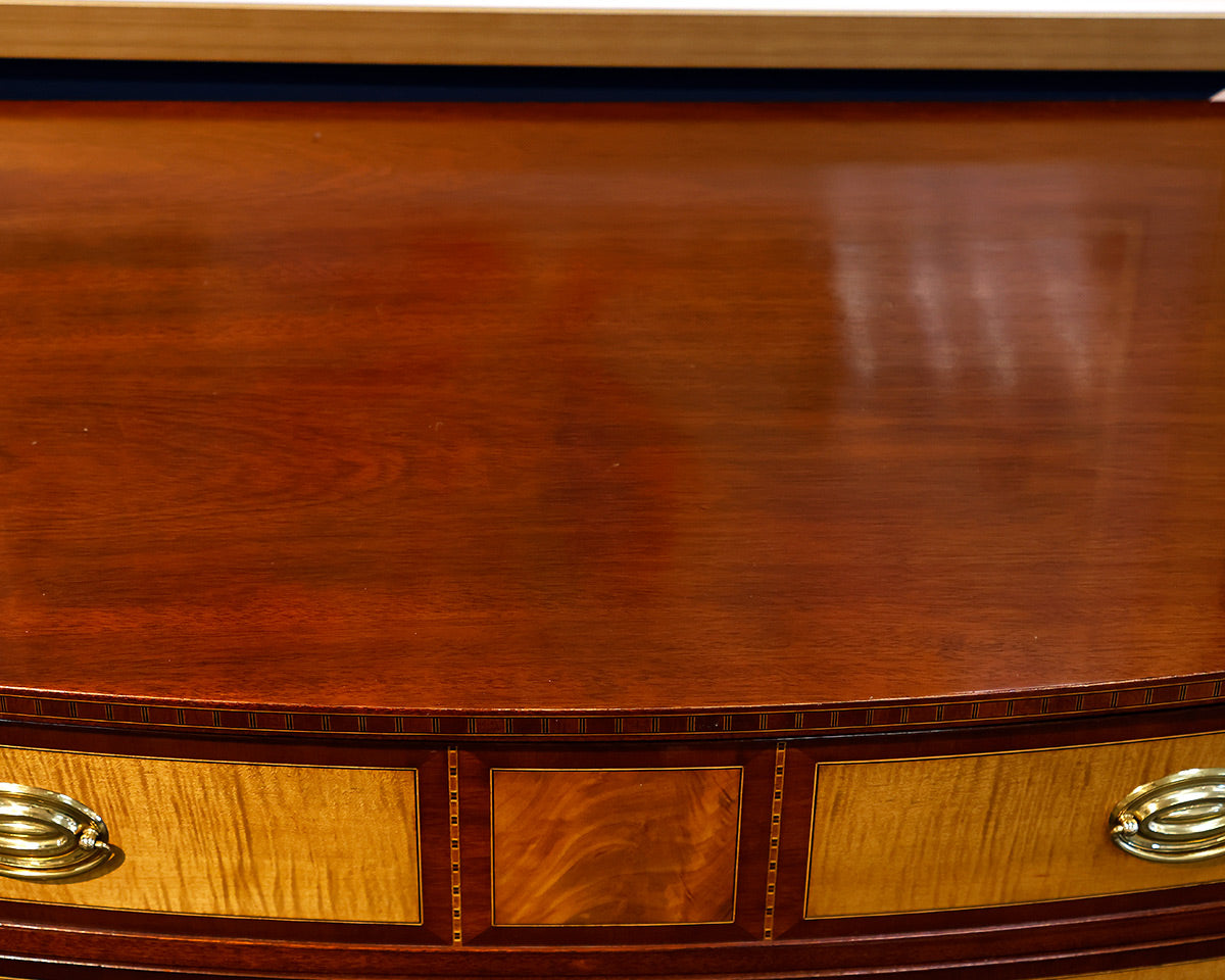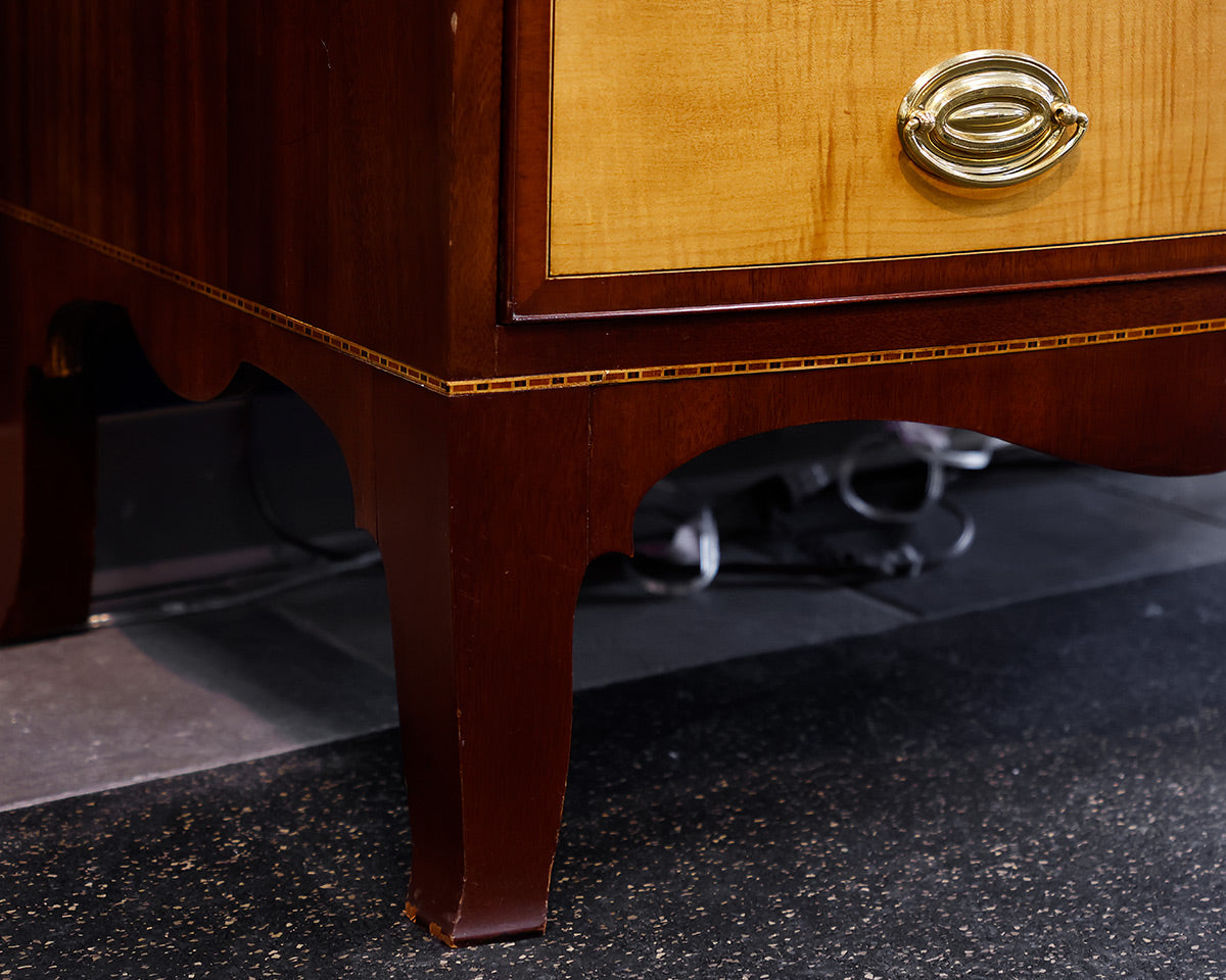 Stickley 4-Drawer Mahogany Colonial Williamsburg Accent Chest. Inlaid Detailing With Gold Hardware.