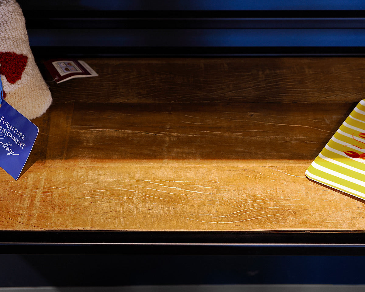 Tall Rustic Transitional Bookcase Featuring Natural Wooden Shelves and Metal Frame.