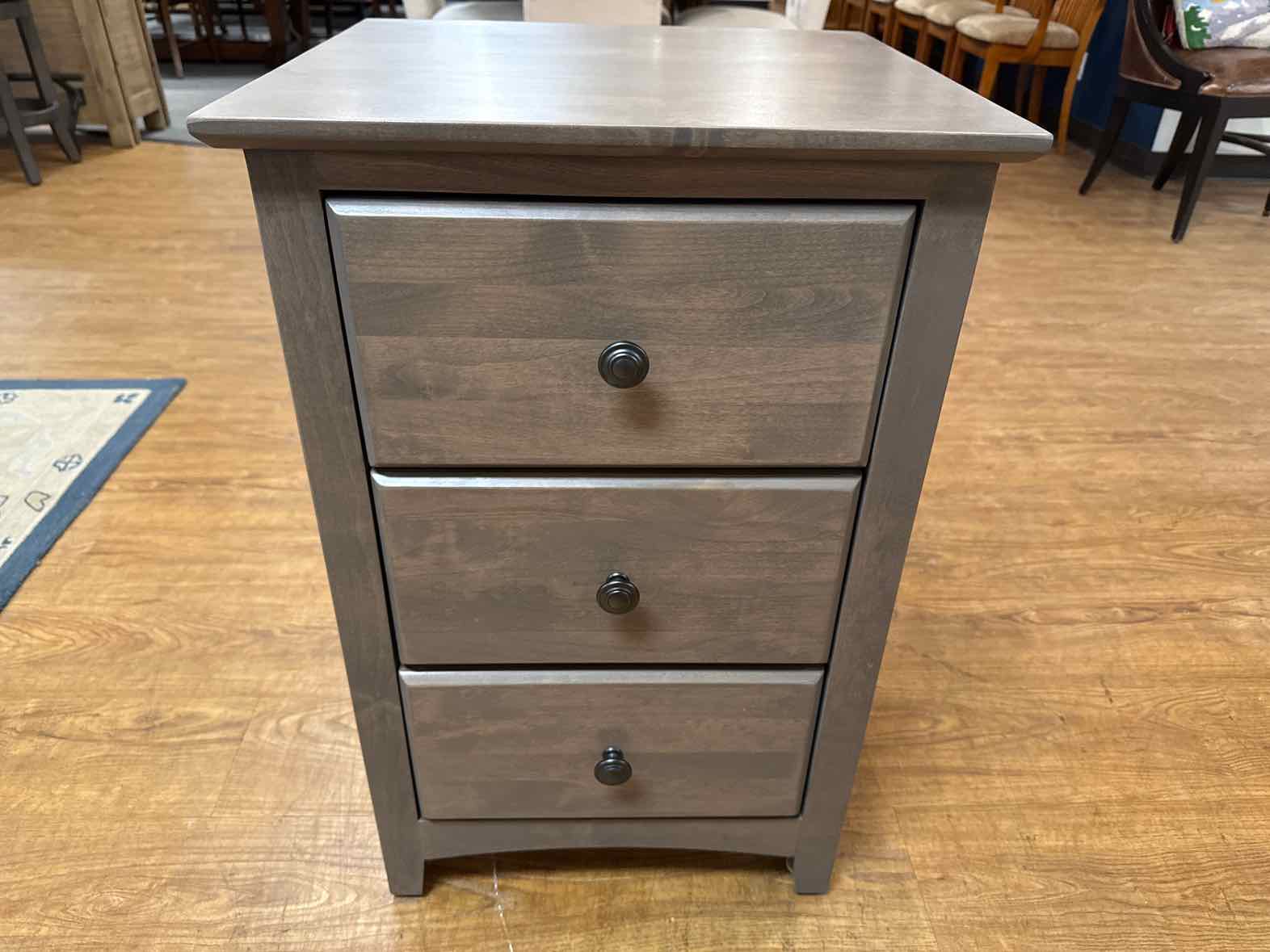 Three drawer washed grey nightstand with dovetailed drawers