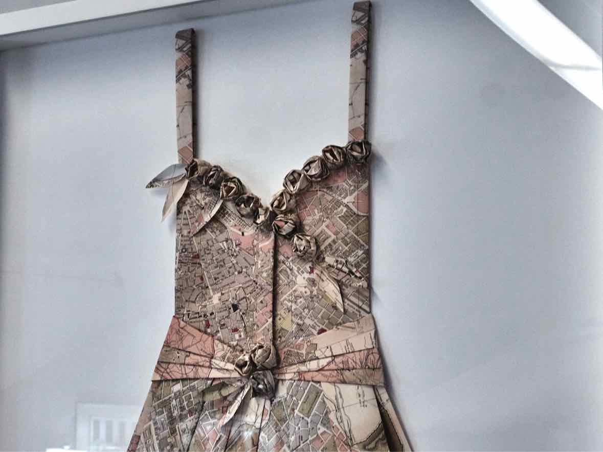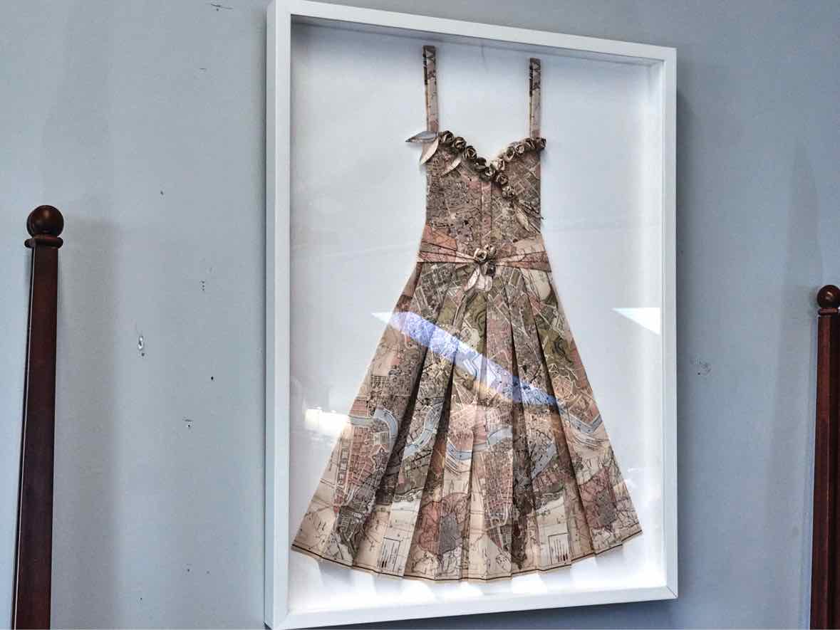 Vintage Map Dress Form Artwork in White Shadow Box