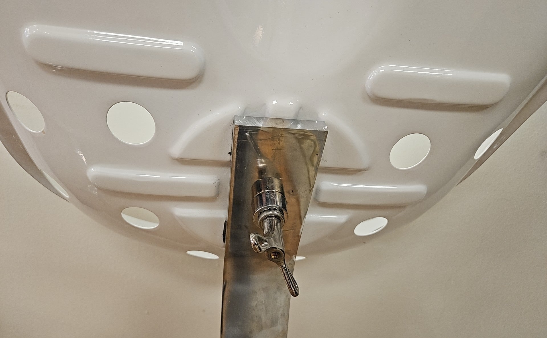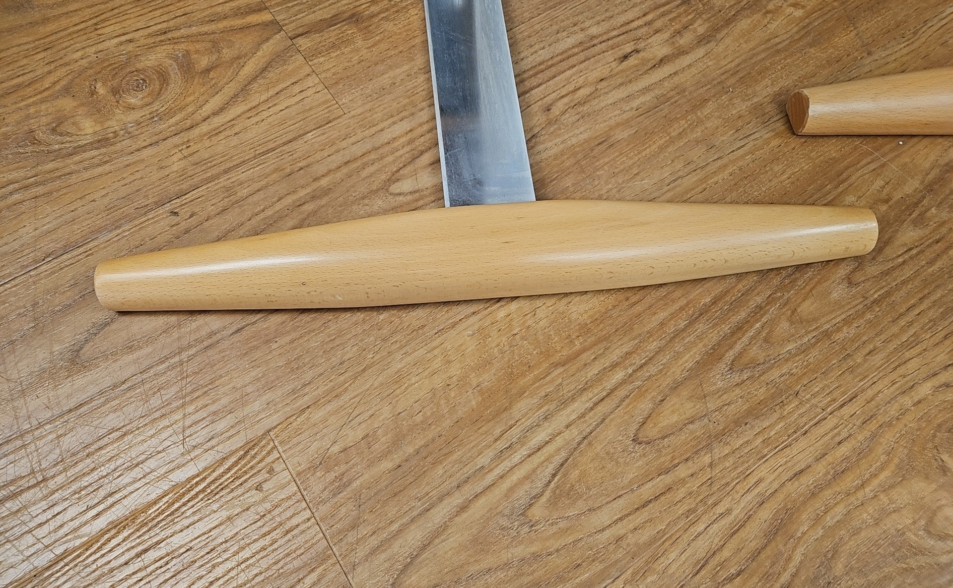 'Mezzadro' pair of stools with enameled steel tractor seat, cantilever steel stem and beech wood base